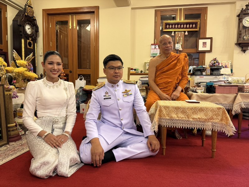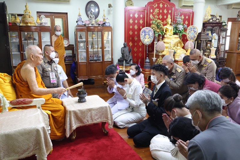 ซึ่งบรรยากาศชื่นมื่นไปด้วยความรัก-ความอบอุ่นของทั้งสองครอบครัว คือคุณกฤตพัฒน์-พันเอกหญิงเกษมณี จุลไสย คุณพ่อ-คุณแม่ เจ้าสาว, คุณรัตนชัย-นงเยาว์ สัมฤทธิ์ดีงาม คุณพ่อ-คุณแม่ เจ้าบ่าว พร้อมญาติคนไกล้ชิดในครอบครัว โดยมี คุณเอนก จิตตขจรเกียรติ “เสี่ยหนุ่ย-กาแฟโบราณตรามังกรบิน ร่วมด้วย ณ วัดราชบพิธสถิตมหาสีมารามราชวรวิหาร ถนนสราญรมย์ เขตพระนคร กรุงเทพฯ