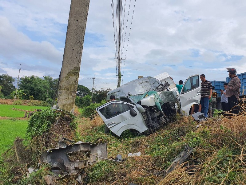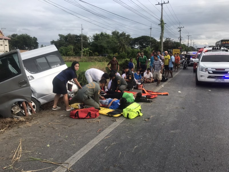 ศูนย์ข่าวภาคกลาง จังหวัดลพบุรี รถตู้รับส่งนักเรียนยางระเบิดเสียหลักตกข้างทางเจ็บระนาว 18 ราย คาดบรรทุกเกิน