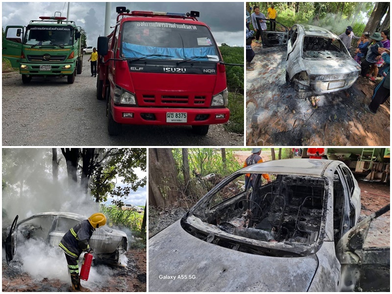 โดยเวลาประมาณ 09.10 น. เกิดเหตุเพลิงไหม้ โดยมีเด็ก นอนหลับภายในตัวรถ กลุ่มบุคคลที่มาหาเห็ด ให้การช่วยเหลือดับไฟ แต่ เพลิงได้โหมกระหน่ำขึ้นทำให้ไม่สามารถเข้าช่วยเหลือผู้ติดภายในยานพาหนะได้ทันท่วงที จึงประสาน รถดับเพลิง อบต.ห้วยบง และ หินดาด เข้าให้การช่วยเหลือ พร้อมทั้ง เจ้าหน้าที่กู้ชีพ อบต.หินดาด,ห้วยบง รอทีม พฐ. และทีมแพทย์ ตำรวจ สภ. หินดาด เร่งสืบสวน สอบสวน หาสาเหตุ ร.ต.อ วินัย สุขภิรมย์ ร้อยเวร สภ.หินดาด