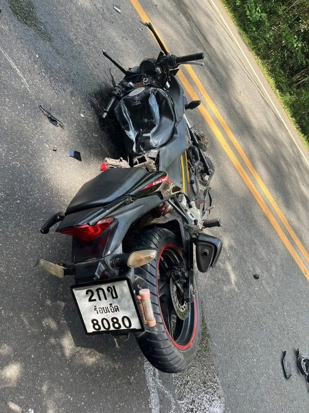 ที่เกิดเหตุพบรถกระบะ นิสสัน ฟรอนเทียร์ สีบรอนซ์เงิน ทะเบียน บต-8018 สมุทรปราการ ชนกับรถจักรยานยนต์ฮอนด้า ซีบีอาร์ ทะเบียน 2กข-8080 ร้อยเอ็ด สภาพรถทั้งสองคันพังยับเยิน ใกล้กันพบผู้บาดเจ็บสาหัสเป็นชาย 1 ราย และผู้เสียชีวิตในจุดเกิดเหตุเป็นหญิง 1 ราย