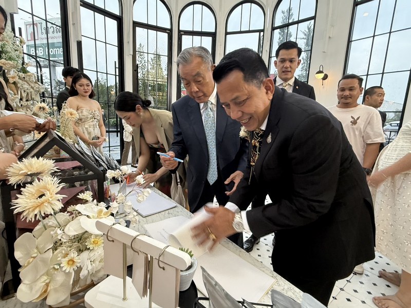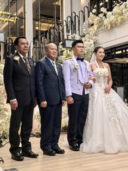 พิธีมงคลสมรสมี “พล.อ.บุญเลิศ แก้วประสิทธิ์” และ “พล.ต.อ. สุนทร ซ้ายขวัญ” เป็นประธานคล้องพวงมาลัยคู่บ่าวสาวในบรรยากาศที่อบอุ่น แขกใกล้ชิดให้เกียรติมาร่วมอวยพร มี “พล.อ.ธีรเดช มีเพียร” อดีตประธานวุฒิสภา, ”พล.อ.ไพโรจน์ นาคฉัตรีย์” ประธานมูลนิธิกตัญญูคืนสู่เหย้าชาวจังหวัดชุมพร, “พล.อ.พฤณฑ์ สุวรรณทัต” อดีต รมช.คมนาคม, พล.อ. วิชิต ยาทิพย์ นายกสมาคมวัฒนธรรมและเศรษฐกิจไทยเมียนมา, พล.อ.ธวัชชัย สมุทรสาคร อดีตแม่ทัพภาคที่ 2, พล.อ.สุวโรจน์ ทิพย์มงคล อดีต ผอ.สนป.กห., พล.อ.ธนาสร ป้องอาณา อดีต รอง ผบ.นทพ., พล.อ.เอี่ยม น้ำจันทร์, พล.ท.กานต์ ทองอารีย์ อดีตรองเจ้ากรมเทค โนโลยีสารสนเทศและอวกาศกลาโหม, พล.ต.ดนัย ดิษาภิรมย์, พ.อ.ดร.ศรัญญู วิริยเวชกุล รอง ผอ.สพพ., พ.ต.อ.ไกรกิจจ์ บัวแก้ว อดีต รอง ผบก.น.1, พล.ต.ต.ธีรเดช ธรรมสุธีร์ รอง ผบช. น., สุนันต์ อรุณนพรัตน์ อดีต ผช.รมว.ทรัพยากรธรรมชาติฯ