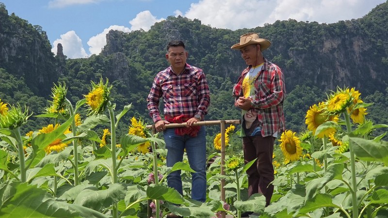 สำหรับดอกทานตะวัน ไม่ใช่แค่ความสวย แต่ยังมี ประโยชน์หลากหลายจาก “ทานตะวัน” พืชเศรษฐกิจที่ยั่งยืน สำหรับการปลูกดอกทานตะวันแปลงนี้ นอกเหนือจากการเป็นแหล่งท่องเที่ยวที่ดึงดูดผู้คนให้มาเยือนแล้ว ดอกทานตะวันยังเป็นพืชเศรษฐกิจที่มีประโยชน์หลากหลายและสนับสนุนการเกษตรอย่างยั่งยืน เป็นพืชน้ำมันคุณภาพสูง เมล็ดทานตะวัน สามารถนำไปสกัดเป็นน้ำมันทานตะวัน ซึ่งอุดมไปด้วยไขมันไม่อิ่มตัวเชิงซ้อน เช่น กรดไลโนเลอิก ที่ช่วยลดคอเลสเตอรอล เป็นประโยชน์ต่อสุขภาพหัวใจและหลอดเลือด และยังใช้ในการผลิตอาหารสัตว์ กากเมล็ดทานตะวันที่เหลือจากการสกัดน้ำมัน เป็นผลพลอยได้ที่มีโปรตีนสูง สามารถนำไปผลิตเป็นอาหารสัตว์ที่มีคุณภาพ เป็นแหล่งอาหารสุขภาพ ต้นอ่อนทานตะวันเป็นที่นิยมอย่างมากในกลุ่มผู้รักสุขภาพ เพราะมีโปรตีน วิตามิน (A, B2, E, D, K) และสารต้านอนุมูลอิสระสูง ช่วยบำรุงสายตา ผิวพรรณ และชะลอความชรา อีกทั้ง ทานตะวัน ยังเป็นพืชเพื่อการฟื้นฟูดิน มีระบบรากที่ลึก ช่วยปรับปรุงสภาพดินให้มีความร่วนซุย และเพิ่มฮิวมัสให้กับดิน ทำให้ดินมีความอุดมสมบูรณ์มากขึ้น เหมาะสำหรับการปลูกพืชหมุนเวียนในรอบต่อไป