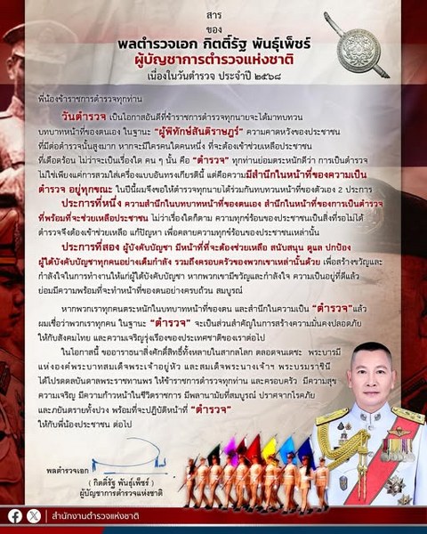 3.) สารของ พล.ต.อ.กิตติ์รัฐ พันธุ์เพ็ชร์ ผู้บัญชาการตำรวจแห่งชาติ เนื่องใน “วันตำรวจ”