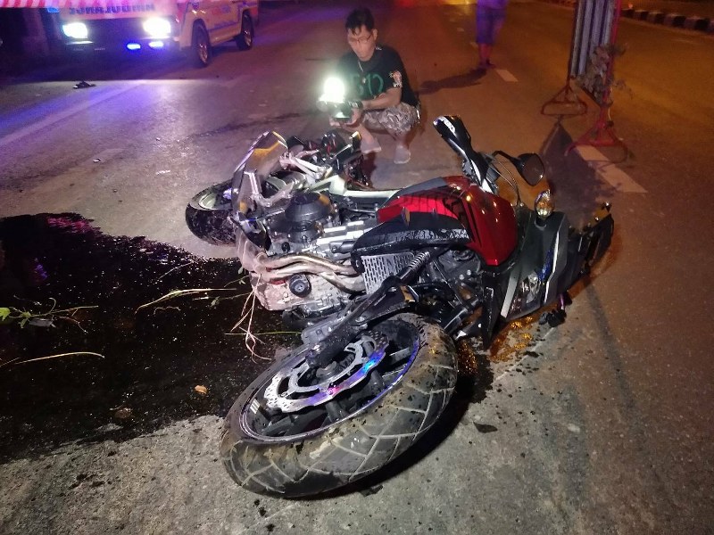 หนุ่มทำงานขนส่งจังหวัดนครนายก ขับรถจักรยานยนต์บิ๊กไบค์จะกลับบ้านพัก เกิดรถเสียหลักชนเสาป้ายบอกทางอย่างแรงร่างกระเด็น เสียชีวิตคาที่