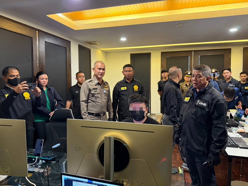 พล.ต.ท.สยาม บุญสม ผบช.น. มอบหมาย พล.ต.ต.วสันต์ เตชะอัครเกษม รอง ผบช.น., พล.ต.ต.ธีรเดช ธรรมสุธีร์ รอง ผบช.น. นำกำลังเจ้าหน้าที่ตำรวจลงพื้นที่สืบสวนจนพบกลุ่มชาวจีนต้องสงสัย 4 ราย แอบขนอุปกรณ์เครื่องคอมพิวเตอร์จำนวนมาก พร้อมกับอุปกรณ์อิเล็กทรอนิกส์แปลกๆ เข้าไปในคอนโดหรูภายใน ซ.สุขุมวิท 16 ซึ่งต่อมา พล.ต.ต.ธีรเดช ธรรมสุธีร์ รอง ผบช.น. นำกำลังเจ้าหน้าที่แฝงตัวเป็นช่างอาคารจนพบว่ามีการตั้งห้อง “วอร์รูม” เป็นฐานบัญชาการอยู่ภายในคอนโดหรูดังกล่าว และมีการมั่วสุมยาเสพติดด้วย ต่อมาวันที่ 9 พ.ย.2568 เวลา 12.30 น. พล.ต.ท.จิรภพ ภูริเดช ผู้ช่วย ผบ.ตร. นำกำลังเจ้าหน้าที่พร้อมหมายค้นเข้าตรวจสอบ ห้องสูทหรูในคอนโดชื่อดัง ซ.สุขุมวิท 16 แขวงคลองเตย เขตคลองเตย จ.กรุงเทพ โดยใช้ยุทธวิธีเข้าจับอย่างฉับพลัน จนทำให้กลุ่มผู้ต้องหาไม่ทันตั้งตัว และไม่สามารถทำลายพยานหลักฐานในคอมพิวเตอร์ได้ ผลการตรวจค้นพบห้อง “วอร์รูม” มีคอมพิวเตอร์ 4 เครื่อง ยังคงเปิดค้างไว้