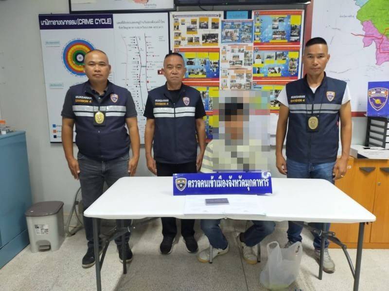 เจ้าหน้าที่งานสืบสวนปราบปราม ตม.จ.มุกดาหาร ได้รับแจ้งประสานจาก ร.ต.อ.หญิง กฤตยา เสริมสุข รอง สว.ตม.จ.มุกดาหาร ว่าขณะปฏิบัติหน้าที่อยู่ที่จุดตรวจบุคคล สถานที่ดังกล่าว ได้ตรวจพบ นายนุชา ไชยมงคล อายุ 27 ปี สัญชาติ ไทย พักอาศัยอยู่บ้านเลขที่ 18 ม.1 ต.พลับพลา อ.เชียงขวัญ จ.ร้อยเอ็ด มายื่นแสดงกับเจ้าหน้าที่ประจำช่องตรวจเพื่อตรวจอนุญาตเดินทางออกไปนอกราชอาณาจักร จากการตรวจสอบข้อมูลตามระเบียบพิธีการเข้าเมืองพบว่าผู้ถูกจับเป็นผู้ต้องหาตามหมายจับศาลจังหวัดร้อยเอ็ด ที่ 336/2562 ลงวันที่ 23 สิงหาคม 2562 ข้อหา “เสพเมทแอมเฟตามีนโดยผิดกฎหมายและเป็นผู้ขับขี่รถเสพเมทแอมเฟตามีน”
