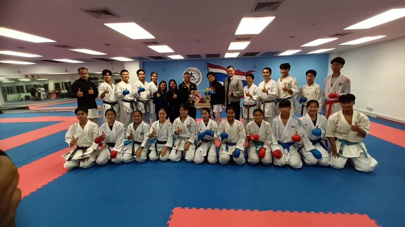 จากนั้น ดร.ณัฏฐ์ ธีรณัฐสุภานนท์ พร้อมคณะได้ไปเยี่ยมชมการฝึกซ้อมของนักกีฬาคาราเต้ทีมชาติไทย โดยมี พลเอกสุรชาติ จิตต์แจ้ง นายกสมาคมกีฬาคาราเต้แห่งประเทศไทย คณะผู้ฝึกสอนและนักกีฬาคาราเต้ทีมชาติไทยให้การต้อนรับ โดย ดร.ณัฏฐ์ ธีรณัฐสุภานนท์ ได้มอบกระเช้าผลไม้และเงิน 20,000 บาทสนับสนุนการฝึกซ้อมของนักกีฬาคาราเต้ทีมชาติไทย เพื่อเป็นขวัญและกำลังใจให้กับนักกีฬาคาราเต้ทีมชาติไทย ทำให้นักกีฬาคาราเต้รู้สึกอบอุ่นในกำลังใจที่มอบให้ในวันนี้ ดร.ณัฏฐ์ ธีรณัฐสุภานนท์ ยังกล่าวชื่นชมน้องๆนักกีฬาคาราเต้ทีมชาติไทย กับความเสียสละ ความมุ่งมั่นในการฝึกซ้อมเป็นตัวแทนประเทศไทยในการแข่งขันกีฬาซีเกมส์ ครั้งที่ 33 ขอให้น้องๆ นักกีฬา ประสบความสำเร็จตามเป้าหมายในการแข่งขันซีเกมส์ในอีก 22 วันข้างหน้า พร้อมทิ้งท้ายกล่าวเชิญชวนแฟนกีฬาชาวไทยมาร่วมชมร่วมเชียร์เป็นกำลังใจให้กับนักกีฬาทีมชาติไทยในทุกชนิดกีฬา เพราะเสียงเชียร์จากกองเชียร์ไทยทุกท่านคือพลังในการแข่งขันของนักกีฬาทีมชาติไทยทุกคน