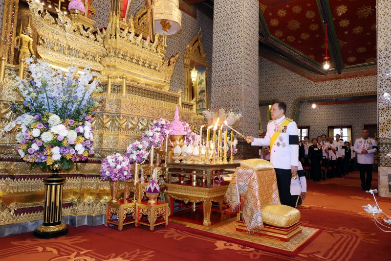 ครั้นเมื่อเสด็จพระราชดำเนินถึง เสด็จเข้าพระที่นั่งอมรินทรวินิจฉัย พระบาทสมเด็จพระเจ้า อยู่หัว ทรงจุดธูปเทียนเครื่องนมัสการพานทองสองชั้นบูชาพระพุทธปฏิมาชัยวัฒน์ ประจำรัชกาลที่ 6 และพระพุทธรูปประจำวันประสูติของพระอัฐิสมเด็จพระเจ้าภคินีเธอ เจ้าฟ้าเพชรรัตนราชสุดา สิริโสภาพัณณวดี ซึ่งประดิษฐานในพระที่นั่งบุษบกมาลา ทรงกราบ ทรงจุดธูปเทียนเครื่องราชสักการะทองลงยาราชาวดี และทรงจุดธูปเทียนเครื่องทองน้อยกราบถวายบังคมพระอัฐิสมเด็จพระเจ้าภคินีเธอ เจ้าฟ้าเพชรรัตนราชสุดา สิริโสภาพัณณวดี ซึ่งประดิษฐานที่พระแท่นพระนพปฎลมหาเศวตฉัตร สมเด็จพระนางเจ้า ฯ พระบรมราชินี ทรงจุดธูปเทียนเครื่องราชสักการะทองลงยารอง และทรงจุดธูปเทียนเครื่องทองน้อยกราบถวายบังคมพระอัฐิ ทรงกราบ