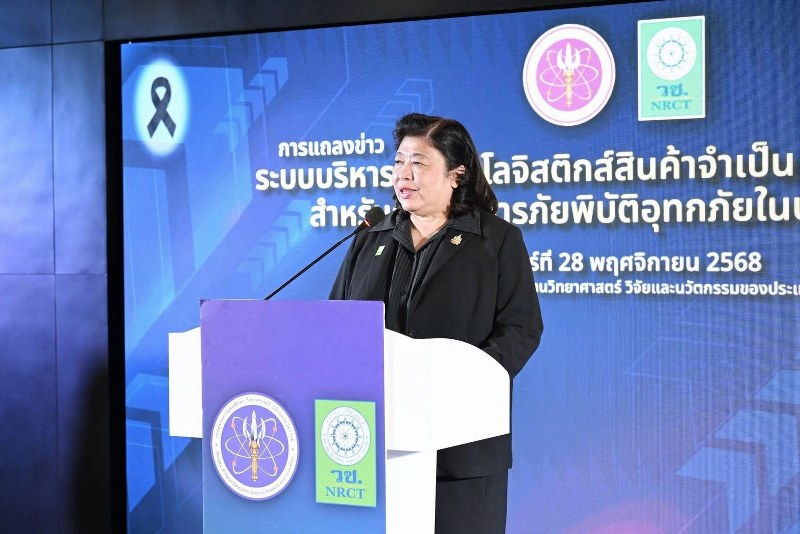 เมื่อวันที่ 28 พฤศจิกายน 2568 สำนักงานการวิจัยแห่งชาติ (วช.) กระทรวงการอุดมศึกษา วิทยาศาสตร์ วิจัยและนวัตกรรม (อว.) จัดการแถลงข่าว “ระบบบริหารจัดการโลจิสติกส์สินค้าจำเป็นและยาเวชภัณฑ์สำหรับการจัดการภัยพิบัติอุทกภัยในประเทศไทย” โดย ดร.วิภารัตน์ ดีอ่อง ผู้อำนวยการสำนักงานการวิจัยแห่งชาติ (ผวช.) เป็นประธานในพิธี ณ ศูนย์ข้อมูลสาร สนเทศกลางด้านวิทยาศาสตร์ วิจัยและนวัตกรรมของประเทศ อาคาร วช.8