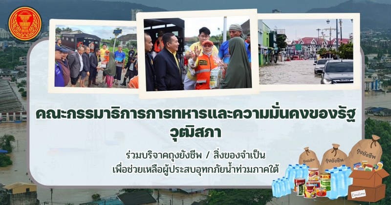 คณะกรรมาธิการการทหารและความมั่นคงของรัฐ วุฒิสภา ขอเป็นพลังใจ พลังกาย ร่วมห่วงใยช่วยเหลือปวงพี่น้องชาวไทยในพื้นที่อุทกภัยน้ำท่วม