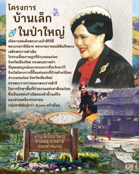 สมเด็จพระนางเจ้าสิริกิติ์ พระบรมราชินีนาถ พระบรมราชชนนีพันปีหลวง ทรงมีพระราชดำริที่จะให้ราษฎรเหล่านั้นเข้ามาช่วยฟื้นฟูสภาพป่า เพื่ออนุรักษ์แหล่งต้นน้ำลำธาร โดยจะดำเนินการขอใช้พื้นที่ของกรมป่าไม้ จัดตั้งเป็น “โครงการบ้านเล็กในป่าใหญ่” และมูลนิธิส่งเสริมศิลปาชีพฯ จะให้การสนับสนุนการฝึกอบรมศิลปาชีพและปลูกฝังความรู้เรื่องการเกษตร การอนุรักษ์ธรรมชาติแก่ราษฎรที่จะเข้ามาอยู่ในพื้นที่ดังกล่าว ให้คนกับป่าอยู่ร่วมกันได้อย่างผสมกลมกลืน โดย “คนเป็นผู้พิทักษ์รักษาป่า ป่าให้ความร่มเย็น และเป็นแหล่งผลิตอาหารของคน”