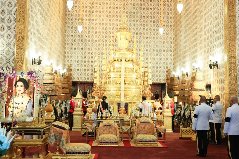 มหาวชิราลงกรณวรราชภักดี สิริกิจการิณีพีรยพัฒน รัฐสีมาคุณากรปิยชาติ สยามบรมราชกุมารี สมเด็จพระเจ้าน้องนางเธอ เจ้าฟ้าจุฬาภรณวลัยลักษณ์ อัครราชกุมารี กรมพระศรีสวางควัฒน วรขัตติยราชนารี ทูลกระหม่อมหญิงอุบลรัตนราชกัญญา สิริวัฒนาพรรณวดี สมเด็จพระเจ้าลูกเธอ เจ้าฟ้าสิริวัณณวรี นารีรัตราชกัญญา พระเจ้าวรวงศ์เธอ พระองค์เจ้าสิริภาจุฑาภรณ์ พระเจ้าวรวงศ์เธอ พระองค์เจ้าอทิตยาทรกิติคุณ และท่านผู้หญิงสิริกิติยา เจนเซน เฝ้าทูลละอองธุลีพระบาทรับเสด็จ ณ พระที่นั่งดุสิตมหาปราสาท พระบรมมหาราชวัง