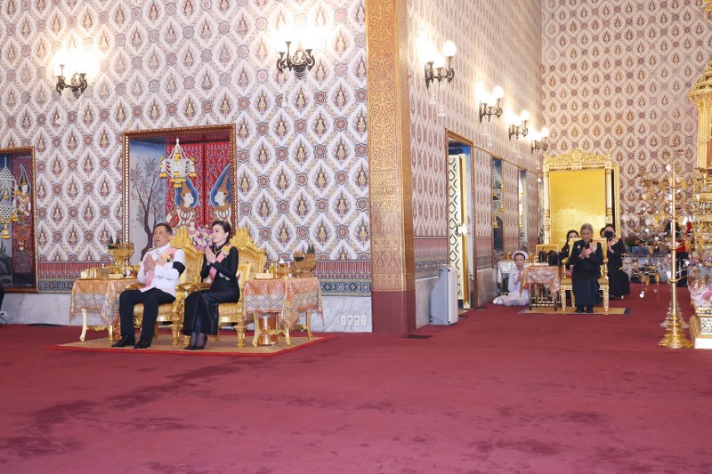 มหาเศวตฉัตร ทรงกราบ แล้วประทับพระราชอาสน์ สมเด็จพระอริยวงศาคตญาณ สมเด็จพระสังฆราช สกลมหาสังฆปริณายก ถวายศีล จบแล้ว พระสงฆ์ 30 รูป ถวายพรพระ