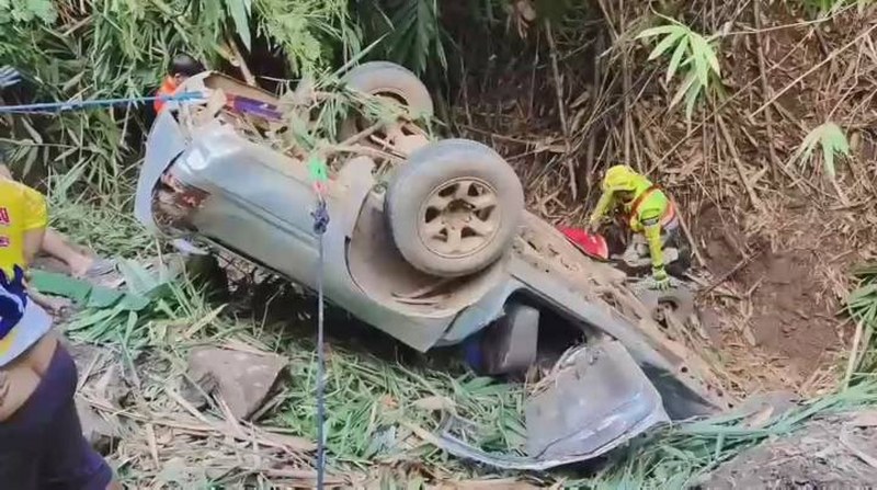 อุทัยธานี – ตาวัย 70 ปี ขับรถขึ้นเขาขาลงเขา เสียหลักหลุดโค้งพุ่งลงเหวลึกดับ 1 เจ็บ 1
