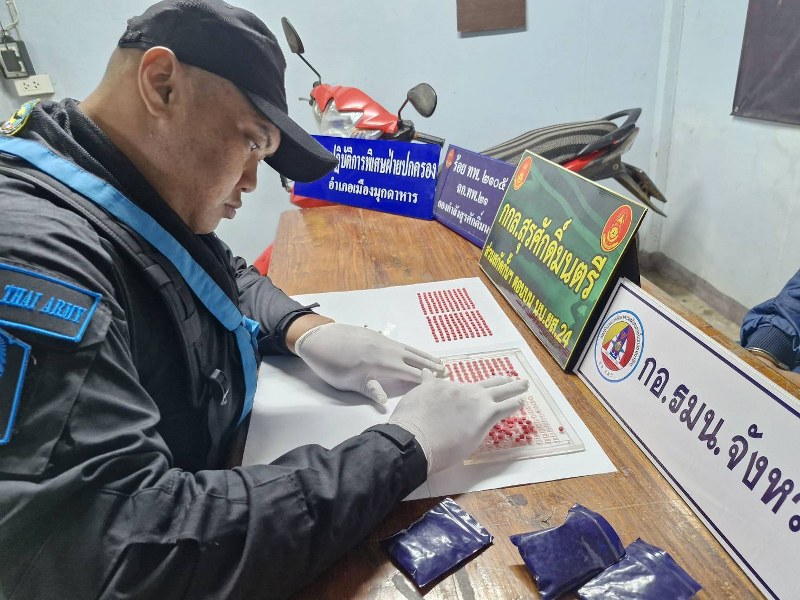 เมื่อวันที่ 19 ธ.ค.68 เวลา 19.40 น. ที่บริเวณกระท่อมสวนยางพารา(ไม่มีเลขที่) พื้นที่ บ.โพนสว่าง ม.6 ต.ดงเย็น อ.เมืองมุกดาหาร จ.มุกดาหาร หลังจากสืบทราบว่าแก๊งค้ายาบ้าในพื้นที่ ลักลอบขายาบ้าให้กับกลุ่มวัยรุ่นและผู้ใช้แรงงาน ซึ่งเป็นราคาเข้าถึงได้ง่าย จึงเข้าแจ้งเบาะ แสให้กับ ร้อยโท วันชาติ เหมือนปืน ผู้บังคับกองร้อยเฉพาะกิจทหารพรานที่ 2105 หน่วยเฉพาะกิจกรมทหารพรานที่ 21 จึงบูรณาการร่วมกับฝ่ายปกครอง และหน่วยงานความมั่นคงในพื้นที่ อำเภอเมืองมุกดาหาร ดำเนินการปฏิบัติการตามนโยบาย การป้องกัน สกัดกั้นและปราบปรามยาเสพติดของรัฐบาล Quick Big Win “รวมพลัง รักศรัทธาแก้ปัญหายาเสพติดแบบบูรณาการ บังคับใช้กฎหมายเข้าปิดล้อมตรวจค้นต่อผู้กระทำผิดกฎหมาย ตาม พรบ.ยาเสพติด ตัดตอนเส้นทางลำเลียงยานรก ก่อนกระจายเข้าหมู่บ้าน ปฏิบัติการบุกทลายแก๊งค้ายาบ้า