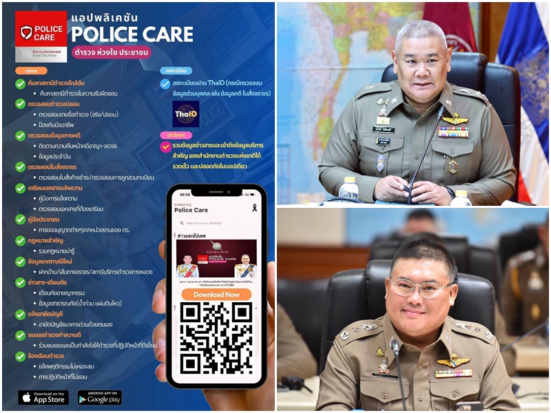 แอปพลิเคชัน “POLICE CARE” เป็นคู่มือประชาชนที่เป็นศูนย์รวมบริการ ข้อมูลข่าวสาร ติดตามผลคดี การแจ้งความ ตลอดจนข้อมูลข่าวสารเตือนภัยต่างๆ มาไว้ในแอปพลิเคชันเดียว โดยฟังก์ชันเด่นของแอปพลิเคชันนี้ ได้แก่ มีฟีเจอร์คู่มือการแจ้งความ,ค้นหาสถานีตำรวจ,ตรวจสอบข้อมูลคดีและใบสั่ง,ตรวจสอบตำรวจว่าเป็นตำรวจจริงหรือไม่ เพื่อป้องกันมิจฉาชีพ,ขั้นตอนและเอกสารในการไปแจ้งความ,กฎหมายต้องรู้,คู่มือการขออนุญาตต่างๆ และช่องทางร้องเรียนตำรวจกรณีไม่ได้รับความเป็นธรรม เพื่อให้ประชาชนอย่างเข้าถึงสะดวก เข้าใจง่าย และปลอดภัย