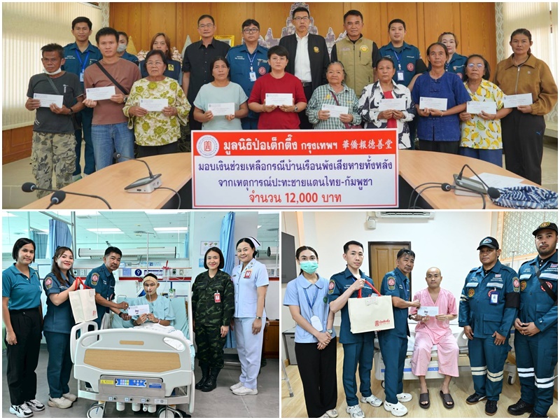 ตามที่ได้เกิดเหตุการณ์ปะทะชายแดนไทย-กัมพูชา ระหว่างวันที่ 7-27 ธันวาคม 2568 ที่ผ่านมา สร้างความเสียหายทั้งชีวิตและทรัพย์สินจำนวนมาก มูลนิธิป่อเต็กตึ๊ง โดย นายวิเชียร เตชะไพบูลย์ ประธานกรรมการ ห่วงใยผู้ได้รับผลกระทบจากเหตุการณ์ดังกล่าว จึงได้มอบหมายให้ฝ่ายสาธารณภัย นำโดย นายรัชพร ประสงค์ทรัพย์ หัวหน้าแผนกสาธารณภัย และนายชุมพล บุญภักดี ผู้ช่วยหัวหน้าแผนกสาธารณภัย นำเจ้าหน้าที่แผนกสาธารณภัย แผนกบรรเทาสาธารณภัย แผนกบัญชี-การเงิน/การธนาคาร และแผนกหน่วยแพทย์สงเคราะห์ชุมชน ลงพื้นที่ชายแดนจังหวัดอุบลราชธานี ศรีสะเกษ สุรินทร์ นครราชสีมา และสระแก้ว รวม 5 จังหวัด ในระหว่างวันที่ 21-23 มกราคม 2569