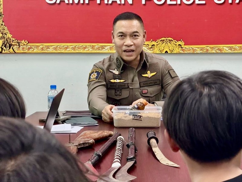 นครปฐม – ผู้การฯ นครปฐม แถลงตามรวบแก๊งนักเลงขาสั้น ก่อเหตุปาระเบิดปิงปอง ไล่ฟันกัน