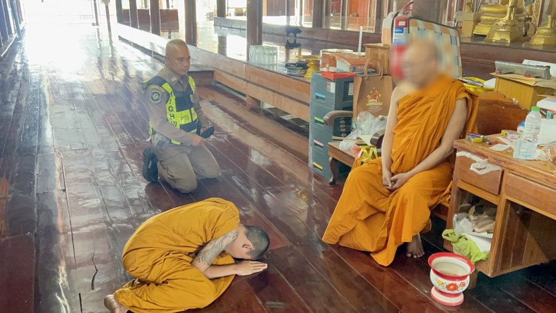 สอบถามผู้ต้องหาเล่าว่าหลังก่อเหตุได้หนีหมายจับและมาบวชเณรอยู่ที่วัดแห่งนี้ เพื่อแก้บน จนเหลือเวลาอีกเพียง 1 วันหมายจับก็จะหมดอายุ แต่ไม่รอดถูกเจ้าหน้าที่ตามจับกุมได้ในที่สุด