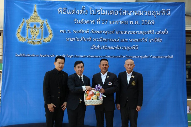 วันที่ 27 ม.ค.2569 ที่เวทีมวยลุมพินี ถนนรามอินทรา : ร้อยตำรวจโท ดร.มนัส โนนุช ประธานกรรมการมูลนิธิมิราเคิล ออฟไลฟ์ และประธานสภาสังคมสงเคราะห์แห่งประเทศไทย ในพระบรมราชูปถัมภ์ และเป็นประธานที่ปรึกษาบริษัท ก่อเกียรติ บ๊อกซิ่งกรุ๊ป จำกัด พร้อมด้วย “เสี่ยโก้” นายก่อเกียรติ พาณิชยารมณ์ โปรโมเตอร์มวยโลกเจ้าของรางวัลยอดเยี่ยมเอเชีย 3 สถาบันพร้อมด้วยนายสรวีย์ ฤทธิชัย เข้าพบพลโท พงศ์ชาติ กัมพลานุวงศ์ นายสนามมวยลุมพินี เพื่อรับการแต่งตั้งเป็นโปรโมเตอร์จัดการแข่งขันมวยไทย ให้กับเวทีมวยลุมพินี ซึ่งทางเวทีมวยลุมพินีเชื่อว่า “เสี่ยโก้” นายก่อเกียรติ พาณิชยารมณ์ และนายสรวีย์ ฤทธิชัย จะเข้ามาสร้างสีสันความคึกคักให้เกิดขึ้นกับเวทีมวยลุมพินีเร็วๆนี้