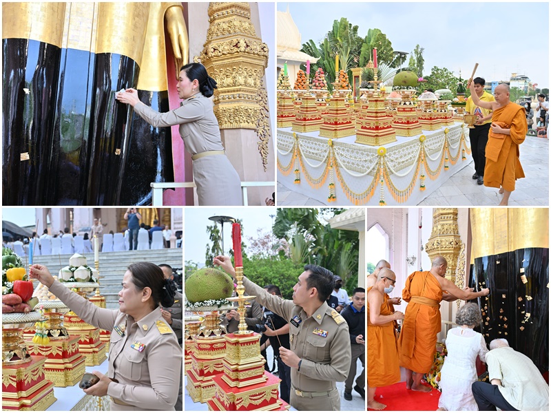 นครปฐม – พุทธศาสนิกชนร่วมพิธีบวงสรวง และปิดทองปฐมฤกษ์ องค์หลวงพ่อพระร่วงโรจนฤทธิ์ ศรีอินทราทิตย์ธรรโมภาส มหาวชิราวุธราชปูชนียบพิตร (องค์จริง) เนื่องในโอกาสประดิษฐานครบ 111 ปี เพื่อความเป็นสิริมงคลแก่ชีวิต และครอบครัว