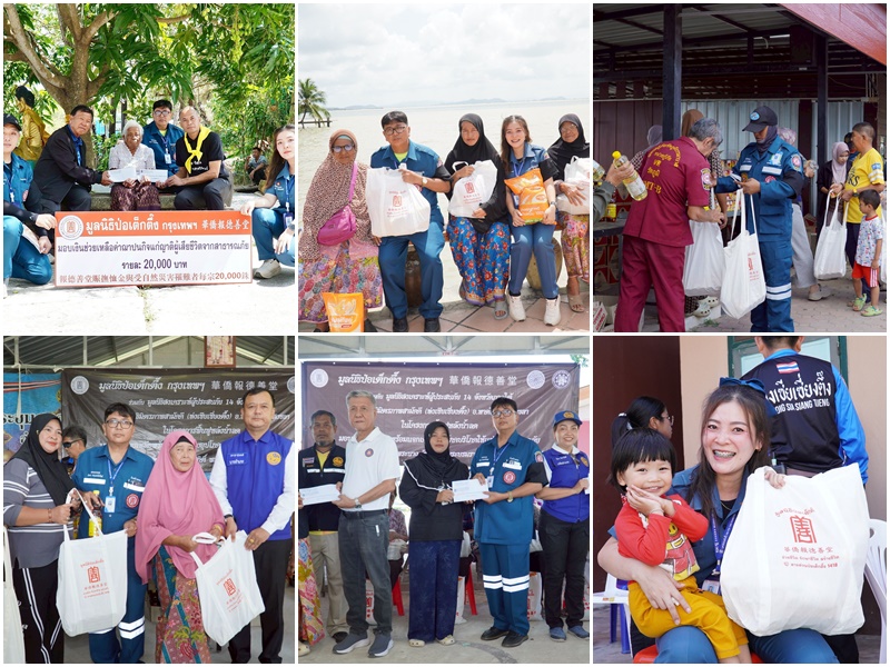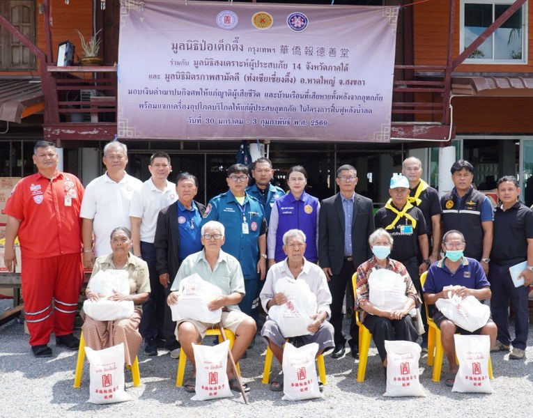ระหว่างวันที่ 26 มกราคม–7 กุมภาพันธ์ พ.ศ.2569 มูลนิธิป่อเต็กตึ๊ง นำโดย นายวิเชียร เตชะไพบูลย์ ประธานกรรมการฯ ห่วงใยผู้ประสบอุทัยภัยภาคใต้ มอบหมายให้ นายรัชพร ประสงค์ทรัพย์ หัวหน้าแผนกสาธารณภัยฯ พร้อมด้วยเจ้าหน้าที่ แผนกบรรเทาสาธารณภัย แผนกบัญชี/การเงิน แผนกหน่วยแพทย์สงเคราะห์ชุมชน ลงพื้นที่ 9 จังหวัดภาคใต้ ช่วยเหลือผู้ประสบอุทกภัย ในโครงการฟื้นฟูหลังน้ำลด ประกอบด้วย จังหวัดยะลา, ปัตตานี, สงขลา, สตูล, พัทลุง, นครศรีธรรมราช, นราธิวาส, ตรัง และสุราษฎร์ธานี โดยแจกจ่ายเครื่องอุปโภคบริโภค อาทิ ข้าวสาร บะหมี่กึ่งสำเร็จรูป ปลากระป๋อง น้ำมันพืช และน้ำปลา รวม 31,500 ชุดๆละ 450 บาท มอบเงินช่วยเหลือแก่ผู้ประสบภัยที่บ้านเรือนเสียหายทั้งหลัง รายละ 12,000 บาท รวม 25 ราย และมอบเงินสงเคราะห์ค่าฌาปนกิจให้แก่ญาติผู้เสียชีวิต รายละ 20,000 บาท จำนวน 189 ราย รวมงบประมาณกว่า 18.25 ล้านบาท โดยมี ผู้แทนจากหน่วยงานรัฐเป็นประธานในพิธี พร้อมทั้งมูลนิธิสงเคราะห์ 14 จังหวัดภาคใต้ และ สมาคม/มูลนิธิแต่ละจังหวัด เป็นผู้ประสานงานและร่วมให้ความช่วยเหลือ