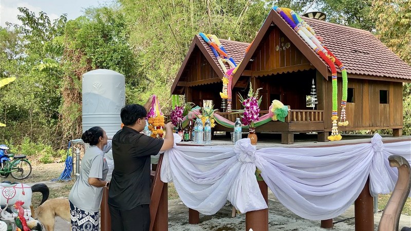 นครนายก – เลี้ยงปู่ตา ประเพณีชาวไทยพวน จัดเครื่องเซ่นไหว้ตามจำนวนครัวเรือน
