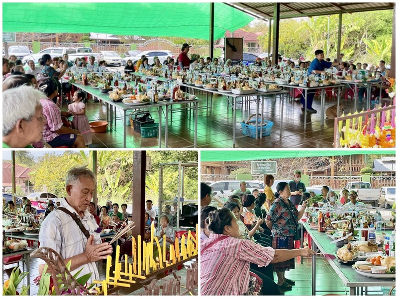 สำหรับปีนี้มีชาวบ้านนำเครื่องเซ่นไหว้มาทั้งหมด 142 ชุด นั้นก็แสดงว่าชาวบ้านในชุมชนมีทั้งหมด 142 ครัวเรือน นี่คือวัฒนธรรมประเพณีของชาติพันธ์ไทยพวน ที่ทำสืบทอดต่อกันมาตั้งแต่รุ่นปู่ ย่า ตา ยาย ตั้งแต่อพยพมาจากเมืองเชียงขวาง จากนั้นแต่ละครัวเรือนก็จะแบ่งของเซ่นไหว้ไว้เป็นส่วนกลาง ใครที่ยังไม่กลับก็จะนั่งกินกันที่หน้าศาลปู่ตา บางส่วนก็นำไปแจกชาวบ้านที่ไม่ได้มาร่วมงาน