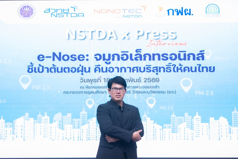 วันที่ 18 กุมภาพันธ์ 2569 สำนักงานพัฒนาวิทยาศาสตร์และเทคโนโลยีแห่งชาติ (สวทช.) โดยศูนย์นาโนเทคโนโลยีแห่งชาติ จัดกิจกรรม NSTDA x Press Interviews นักวิจัยพบสื่อมวลชน เพื่อเจาะลึกสัมภาษณ์ข้อมูลผลงานวิจัยใช้ประโยชน์ตอบโจทย์กลยุทธ์งานวิจัยเพื่อพัฒนาสังคมและประเทศชาติของ (สวทช.) โดย ดร.ภญ.อุรชา รักษ์ตานนท์ชัย ผู้อำนวยการศูนย์นาโนเทคโนโลยีแห่งชาติ (นาโนเทค) (สวทช.) เปิดเผยถึงยุทธศาสตร์การวิจัย ว่า ปัญหาสิ่งแวดล้อมโดยเฉพาะฝุ่นละอองขนาดเล็กเป็นโจทย์ท้าทายระดับชาติที่ นาโนเทค (สวทช.) ให้ความสำคัญสูงสุด นโยบายหลักคือการใช้นวัตกรรมระดับนาโนเข้าไป “สืบหาแหล่งต้นตอ” เพื่อแก้ปัญหาที่ต้นเหตุ ไม่ใช่แค่การเฝ้าระวัง โดยความสำเร็จของเทคโนโลยี e-Nose (จมูกอิเล็กทรอนิกส์) ที่ผ่านมาถูกนำไปใช้ในเชิงพาณิชย์อย่างกว้างขวาง เช่น การตรวจวัดคุณภาพอาหารและเครื่องหอม แต่ปัจจุบันเราได้ยกระดับนวัตกรรมนี้สู่ภารกิจด้านสิ่งแวดล้อมเต็มตัว เพื่อสนับสนุนการแก้ปัญหามลพิษทางอากาศอย่างแม่นยำและยั่งยืน ผ่านโครงการต้นแบบการกระจายเซนเซอร์ 100 เครื่องในพื้นที่วิกฤต