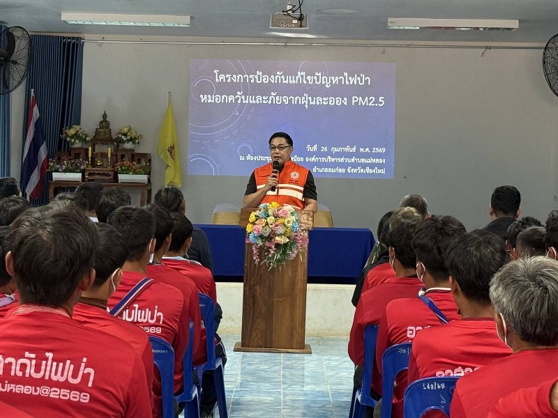 วันนี้ (26 ก.พ. 69) ที่ ห้องประชุมองค์การบริหารส่วนตำบลแม่หลอง อำเภออมก๋อย จังหวัดเชียงใหม่ นายปรีชาพล พูลทวี นายอำเภออมก๋อย ในฐานะผู้อำนวยการศูนย์อำนวยการป้องกันและแก้ไขปัญหาไฟป่า หมอกควัน และฝุ่นละอองขนาดเล็ก PM2.5 อำเภออมก๋อย เป็นประธานเปิดโครงการป้องกันและแก้ไขปัญหาไฟป่า หมอกควัน และภัยจากฝุ่น PM2.5 ตำบลแม่หลอง อำเภออมก๋อย ประจำปีงบประมาณ 2569 โครงการดังกล่าวมีเป้าหมายเพื่อเพิ่มศักยภาพและเตรียมความพร้อมให้กับชุดอาสาดับไฟป่าตำบลแม่หลอง จำนวน 150 คน ให้สามารถปฏิบัติงานได้อย่างมีประสิทธิภาพในช่วงฤดูเสี่ยงไฟป่า