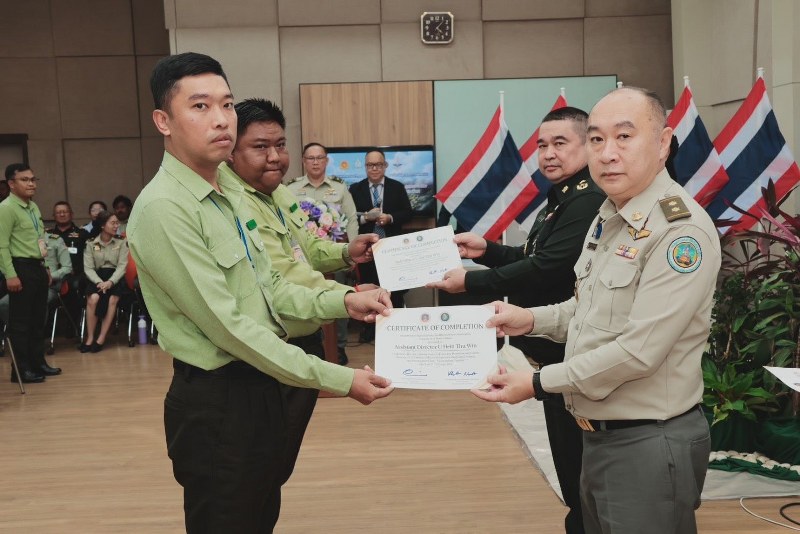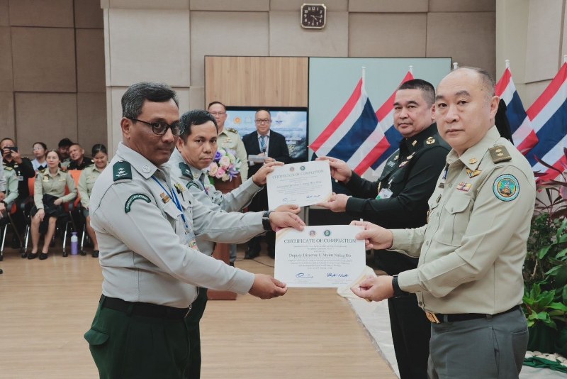หลังเสร็จสิ้นการฝึกอบรมได้พิธีมอบ เกียรติบัตร แก่ผู้ผ่านการฝึกอบรม และควบคุม ไฟป่า กรมอุทยานแห่งชาติ สัตว์ป่า และพันธุ์พืช และพลตรีธีระพันธ์ ไตรพิพัฒน์ ผู้อำนวยการสำนักกิจการชายแดนกับประเทศเพื่อนบ้านกรมกิจการชายแดนทหาร ร่วมมอบเกียรติบัตร แสดงความยินดีและเป็นฝันกำลังใจแก่ผู้เข้ารับการฝึกอบรม ก่อนร่วม ถ่ายภาพเป็นที่ระลึก ร่วมกัน การจัดฝึกอบรมในครั้งนี้นับเป็นอีกก้าวสำคัญของ การเสริมสร้าง ความร่วมมือระหว่างประเทศไทยและสาธารณะแห่งสหภาพเมียนมาร์ เพื่อป้องกันและแก้ไขปัญหาไฟป่าและหมอกควัน ข้ามแดนอย่างเป็นรูปประธรรม ช่วยลดผลกระทบจากไฟป่าและฝุ่นละออง PM 2.5 ในภูมิภาคต่อไป