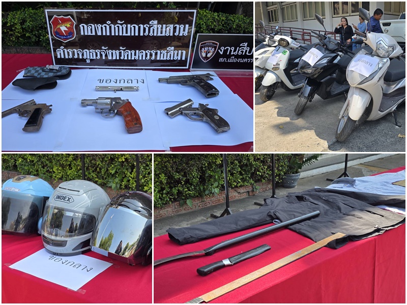 ปิดตำนาน แก๊ง จี5 วัยรุ่นโคราชยิงปืนกลางเมือง ยึดปืน 5 กระบอก มีด 3 เล่ม หลังไล่ล่ายิงกันเจ็บ 1