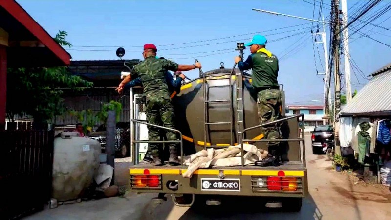 โดยกรมรบพิเศษที่ 1 ได้สนับสนุนรถยนต์บรรทุกน้ำ จำนวน 6 เที่ยวๆ ละ 6,000 ลิตร รวมปริมาณน้ำ 36,000 ลิตร เพื่อทำการแจกจ่ายน้ำอุปโภค บริโภค ให้กับประชาชนที่ประสบปัญหาภัยแล้ง ทำให้ภาชนะกักเก็บน้ำสำรองในแต่ละครัวเรือน เริ่มแห้งขอด เพื่อแก้ปัญหาภัยแล้งที่เกิดขึ้นในปัจจุบันตามนโยบายของกองทัพบก ในโครงการ “ราษฎร์ รัฐ ร่วมใจช่วยภัยแล้ง” ประจำปี 2569 และได้เข้าประชาสัมพันธ์ให้ประชาชนได้รับทราบ และเข้าใจถึงสถานการณ์น้ำในปัจจุบัน ตลอดจนการใช้น้ำอย่างไรให้ได้ประโยชน์จากน้ำอย่างคุ้มค่า