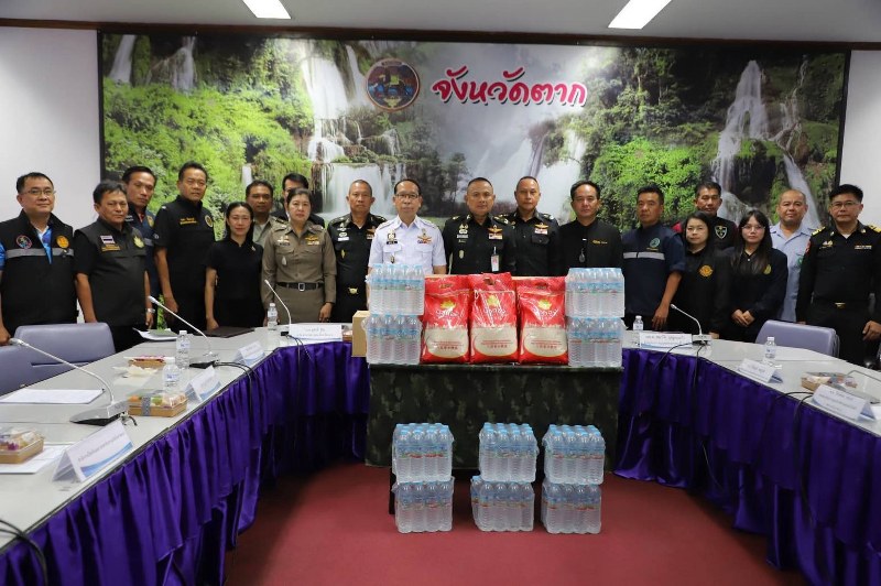 จากนั้น เข้าร่วมประชุมการตรวจเยี่ยมการดำเนินงานการแก้ไขปัญหาไฟป่า หมอกควันจังหวัดตาก โดยมี หัวหน้าส่วนราชการ ตำรวจภูธรจังหวัดตาก องค์การบริหารส่วนจังหวัดตาก ท้องถิ่นจังหวัดตาก ศูนย์อำนวยการจิตอาสาพระราชทานจังหวัดตาก และหน่วยงานที่เกี่ยวข้องเข้าร่วม ทั้งนี้มีการบรรยายสถานการณ์ และการเตรียมป้องกัน แก้ไขปัญหาไฟป่าฯ โดยแต่ละหน่วยงาน ซึ่งจังหวัดตากอยู่ในลำดับที่ 11 จาก 17 จังหวัดในพื้นที่ภาคเหนือ ที่มีจำนวนวัน 14 วัน ที่ค่าฝุ่นเกินมาตรฐาน และมีจำนวนจุดความร้อน 1,257 จุด อยู่ในลำดับที่ 2 จากทั้งหมด 17 จังหวัดในพื้นที่ภาคเหนือ (ข้อมูล ณ วันที่ 10 มีนาคม 2569) เมื่อเปรียบเทียบจากปี 2568 ที่ผ่านมา พบว่า จุดความร้อนลดลง 3,082 จุด หรือคิดเป็น 71.03% อีกทั้งค่าฝุ่น PM2.5 ลดลงมีจำนวนวันลดลง 31 วัน หรือ 68.89% ผู้ว่าราชการจังหวัดตาก ได้มีแนวทางการแก้ไขปัญหาไฟป่า หมอกควันฯ โดยมีมาตรการการบังคับใช้กฎหมาย มาตรการเตรียมความพร้อมหลังฤดูการเผา ปฏิบัติการลาดตระเวนอย่างเข้มข้น เพื่อมุ่งสู่การแก้ไขปัญหาไฟป่าและหมอกควันในพื้นที่อย่างต่อเนื่องและยั่งยืนต่อไป