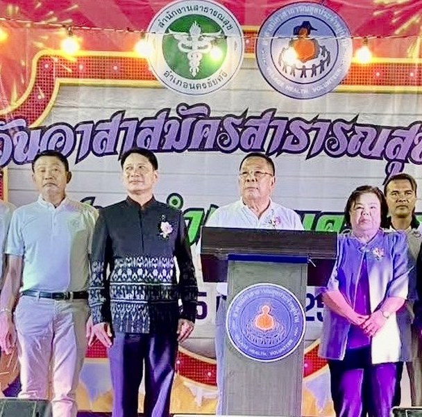 งานในวันนี้ โดยสำนักงานสาธารณสุขอำเภอนครชัยศรี โรงพยาบาลส่งเสริมสุขภาพตำบล ร่วมกับชมรมอาสาสมัครสาธารณสุขอำเภอนครชัยศรี ได้ร่วมกันจัดงานขึ้น เพื่อเป็นการยกย่อง เชิดชูเกียรติ สร้างขวัญและกำลังใจ พี่น้องอสม. ที่ได้ร่วมกันเสียสละ อุทิศตน สร้างคุณประโยชน์ให้แก่แผ่นดิน ผู้ร่วมงานประกอบด้วย คุณสุรภาพร จิรักษา(เจ๊หนิง ชัยศรี) ประธานกต.ตร.สภ. นครชัยศรี และประธานกลุ่มบ้านใหญ่ใจดี, พ.ต.อ.เลอศักดิ์ ตุมรสุนทร ผู้กำกับสภ.นครชัยศรี พร้อมด้วย ท่าน สจ บรรทูล สนน้อย สจ นครชัยศรี และ ปลัดอำเภอนครชัยศรี หัวหน้าส่วนราชการ ผู้บริหารองค์กรปกครองส่วนท้องถิ่น กำนัน ผู้ใหญ่บ้าน อสม. อำเภอนครชัยศรี จำนวน 1,500 คน ภาคเอกชน และแขกผู้มีเกียรติทุกท่าน สถานที่จัดงาน ณ ลานสนามที่ว่าการอำเภอนครชัยศรี หน้าอาคารสำนักงานสาธารณสุขอำเภอนครชัยศรี