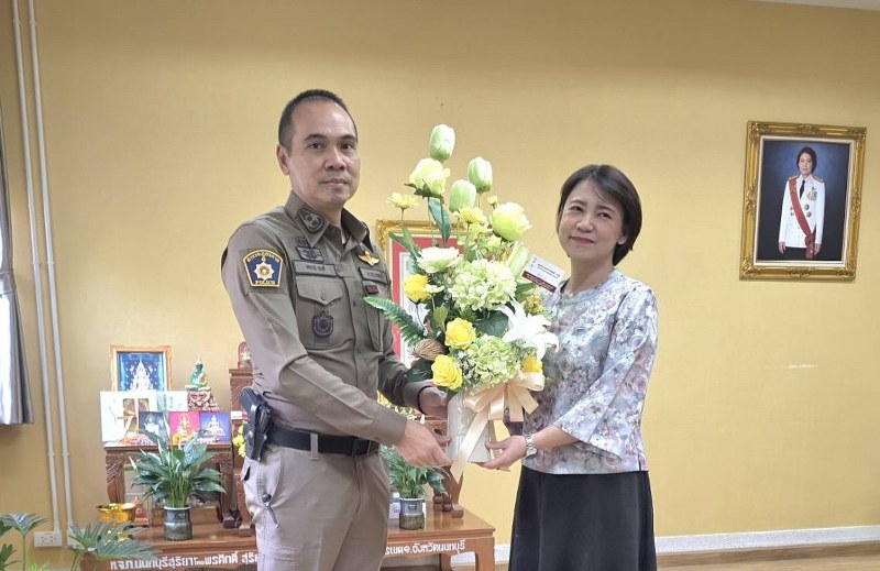 ทั้งนี้ ผบก.ภ.จ.นนทบุรี ยังได้มอบกระเช้าดอกไม้ของขวัญที่ระลึก เพื่อแสดงความยินดีในการนี้ด้วย