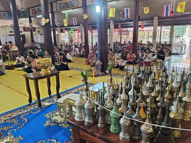 สำหรับในงานจะมีกิจกรรมและการละเล่นมากมาย ชายมอญต่างแต่งกายในชุดประจำชาติอย่างสวยงาม ผู้ชายนุ่งลอยชาย ผู้หญิงสวมเสื้อแขนกระบอกมวยผม คล้องสไบ ใส่ผ้านุ่งกรอมเท้า โดยมีการทำบุญตักบาตรถวายเพล ที่เรียกว่าสลากภัตด้วยการถวายข้าวแช่ ซึ่งเป็นอาหารพื้นบ้านที่ปัจจุบันจะหารับประทานยาก ชาวมอญจะทำกันในช่วงฤดูร้อน โดยผู้ที่มาทำบุญจะนำมาถวายตามหมายเลขของพระที่จับสลากได้ แสดงออกถึงว่าไม่เจาะจงพระองค์ใดองค์หนึ่ง