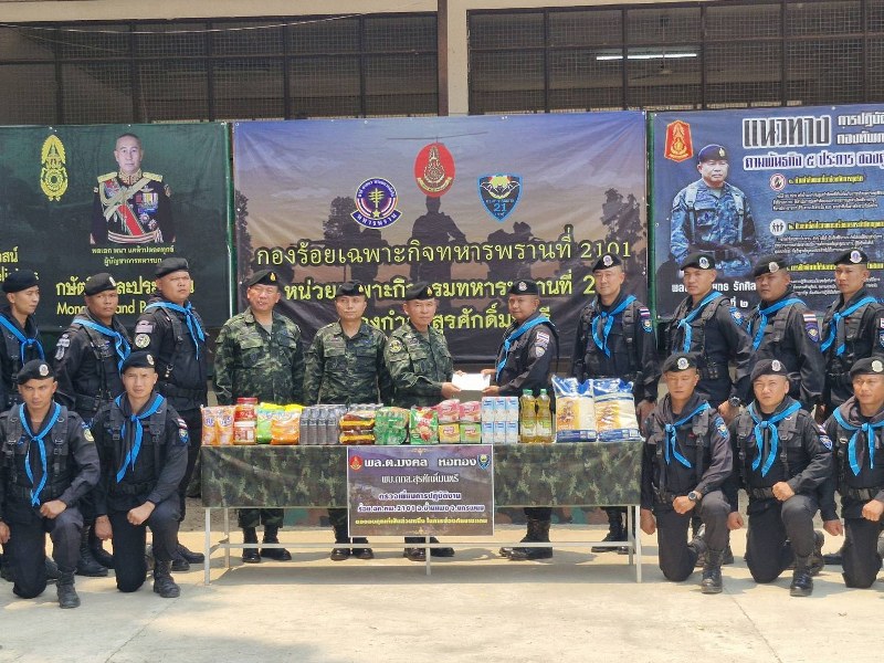 ในโอกาสนี้ ผู้ผบ.กกล.สุรศักดิ์มนตรี ได้มอบสิ่งของบำรุงขวัญให้กำลังป้องกันชายแดนที่ปฏิบัติภารกิจในพื้นที่ชายแดนรับผิดชอบของ กองกำลังสุรศักดิ์มนตรี เพื่อเป็นขวัญกำลังใจในการปฏิบัติหน้าที่ และกล่าวขอบคุณกำลังพลที่ปฏิบัติภารกิจสำคัญในการดูแลแนวชาย แดนไทย-ลาว ซึ่งมีความทุ่มเท เสียสละ ปกป้องประเทศชาติจากภัยคุกคาม ยาเสพติด หรือสิ่งผิดกฎหมาย ซึ่งแสดงถึงการปฏิบัติหน้าที่อย่างเต็มกำลังความสามารถ รวมทั้งการช่วยเหลือพี่น้องประชาชนที่ได้รับความเดือนร้อนตามแนวชายแดนไทย-ลาวในทุกสถานการณ์ และรับประทานอาหารร่วมกับกำลังพลสร้างขวัญกำลังใจ สร้างความภูมิใจให้กับกำลังป้องกันชายแดนทุกนาย ที่ปฏิบัติหน้าที่ด้วยความเข้มแข็งอย่างไม่ย่อท้อเพื่อปกป้องอธิปไตยของชาติไทยสืบไป