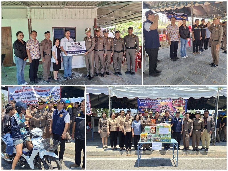 พร้อมกันนั้น ได้ตรวจเยี่ยมจุดบริการประชาชน มอบ น้ำ และเครื่องดื่มชูกำลัง ของอุปโภคบริโภค ให้กับจุดตรวจบริการประชาชน อ.พนมทวน จ.กาญจนบุรี เพื่อเป็นกำลังใจในการปฏิบัติหน้าที่ ป้องกันอุบัติเหตุบนท้องถนน และดูแลบริการ ประชาชนช่วงเทศกาลสงกรานต์