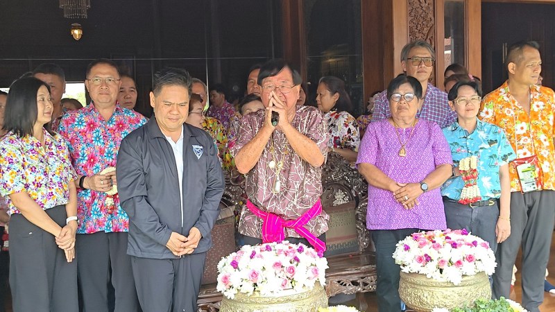 สุพรรณบุรี – บรรยากาศสงกรานต์ ท็อป “วราวุธ” รมว.อุตสาหกรรม รดน้ำดำหัว ขอพรปีใหม่ไทย ประภัตร โพธสุธน ชี้ เป็นขุนพลของพ่อบรรหาร-เสาหลักทำงานเพื่อคนสุพรรณบุรี ด้านประภัตร อวยพรให้เจริญรุ่งเรือง พ่อเมืองสุพรรณ แต่งกลอนอวย พรปีใหม่ ให้ประภัตร