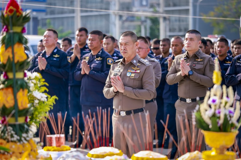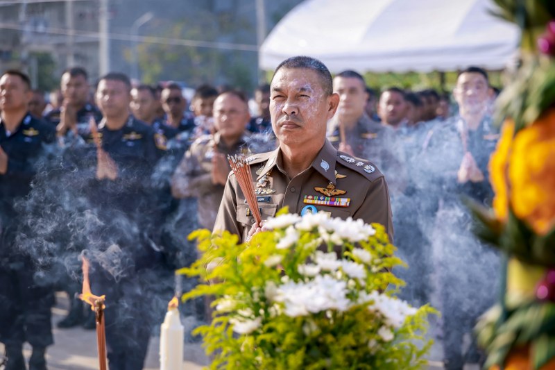 ในการนี้ พล.ต.ท.สยาม บุญสม ผบช.น. เป็นประธานในพิธีฝ่าย ฆราวาส พร้อมด้วย พล.ต.ต. พัลลภ แอร่มหล้า รอง ผบช.น., พล.ต.ต.ธีรเดช ธรรมสุธีร์ รอง ผบช.น., พล.ต.ต.ทินกร สมวันดี ผบก.อก.บช.น., พล.ต.ต.วรศักดิ์ พิสิษฐบรรณกร ผบก.น.1 /ในส่วนของกองบังคับการสายตรวจและปฏิบัติการพิเศษ พล.ต.ต.วรวิทย์ ญาณจินดา ผบก.สปพ. ได้มอบหมายให้ พ.ต.อ. พิทักษ์ สุทธิกุล รอง ผบก.สปพ., พ.ต.อ.เด่นหล้า รัตนกิจ รอง ผบก.สปพ., พ.ต.อ.ธนากร อ่อนทองคำ รอง ผบก.สปพ., พ.ต.อ.สุกฤต มังคละสวัสดิ์ ผกก.สุนัขตำรวจ, พ.ต.อ.วิสิฐศักดิ์ วิพัฒนมงคล ผกก.กลุ่มงานเก็บกู้วัตถุระเบิด /กองกำกับการต่อต้านการก่อการร้าย นำโดย พ.ต.อ.อาทิตย์ วงษ์จันนา ผกก.ต่อต้านการก่อการร้าย พร้อมด้วยข้าราชการตำรวจในสังกัดและครอบครัว เข้าร่วมพิธีอย่างพร้อมเพรียง