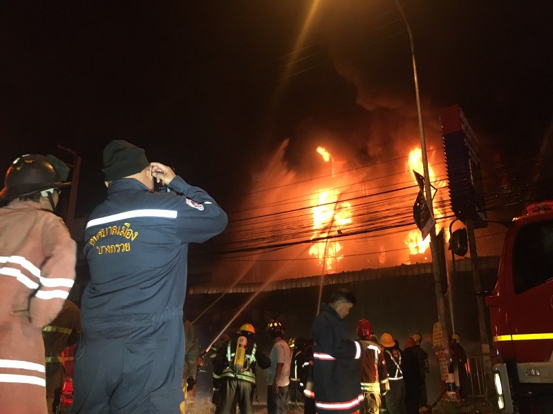 เมื่อเวลา 22.30 น.วันที่ 25 พ.ย.62 ร.ต.อ.เสกสรรค์ เกษตรเอี่ยม รอง สว.สอบสวน สภ. บางศรีเมือง จ.นนทบุรี เดินทางเข้าตรวจสอบหลังจากได้รับแจ้งเกิดเหตุเพลิงไหม้ร้านจำหน่ายสีและวัสดุก่อสร้างรวมถึงจำพวกฮาร์ดแวร์ต่างๆชื่อสีรุ้งซัพพลาย ตั้งอยู่เลขที่ 48/1/2/3 หมู่ 4 ถนนบางกรวย-ไทรน้อย ต.บางกร่าง อ.เมืองนนทบุรี จ.นนทบุรี จากนั้นจึงประสานรถดับเพลิงเทศบาลในพื้นที่ร่วมตรวจสอบ