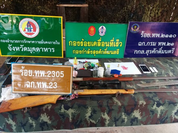 - นายวิทวัส ซาผู ชื่อเล่น (วิท) อายุ 18 ปี ที่อยู่ 42 ม.2 บ.ดอนตาล ต.ดอนตาล อ.ดอนตาล จว.มุกดาหาร (ของกลาง อาวุธปืนไทยประดิษฐิ์ 2 กระบอก)