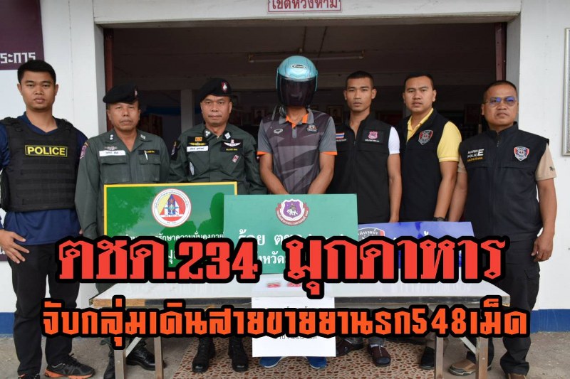 (แถลงข่าว)มุกดาหาร ตำรวจตระเวนชายแดน 234 ร่วม ฝ่ายความมั่นคง กอ.รมน.ตำรวจน้ำ สกัดจับผู้ต้องหาขับรถจักรยานยนต์ตระเวนจำหน่ายยาบ้าให้กลุ่มวัยรุ่นในพื้นที่ถูกจับพร้อมของกลางยาบ้าจำนวน 548 เม็ด