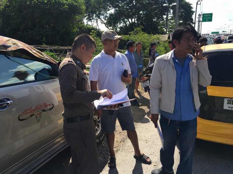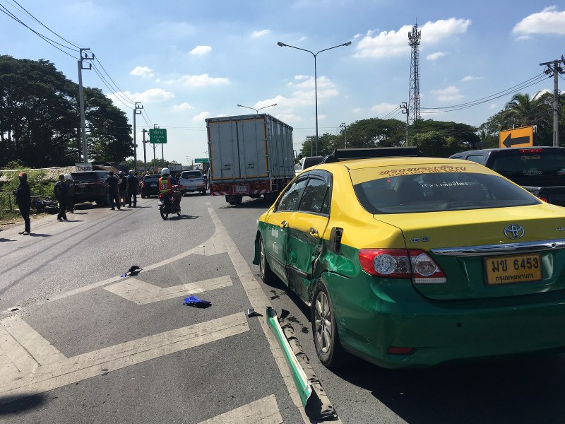 ที่เกิดเหตุพบรถแท็กซี่ยี่ห้อห้อโตโยต้า สีเขียว-เหลือง ทะเบียน มช 6453 กทม จอดอยู่ในช่องเลนซ้ายสภาพรถมีร่องรอยถูกชนเข้าที่ด้านข้างพังเสียหาย และห่างไปประมาณ 20 เมตรพบรถ จยย.แบบบิ๊กไบค์ ขนาด 600 ซี.ซี.ยี่ห้อ ยามาฮ่า รุ่น อาร์ 6 ล้มคว่ำอยู่สภาพหน้ารถพังเสียหายเช่นกันซึ่งลักษณะรถ จยย.นั้นพุ่งไปชนท้ายรถยนต์เก๋งยี่ห้อ โตโยต้า รุ่น ฟอร์จูนเนอร์ สีดำ ทะเบียน 5กส 3371 กทม ที่ท้ายรถมีร่องรอยถูกชนพังเสียหาย