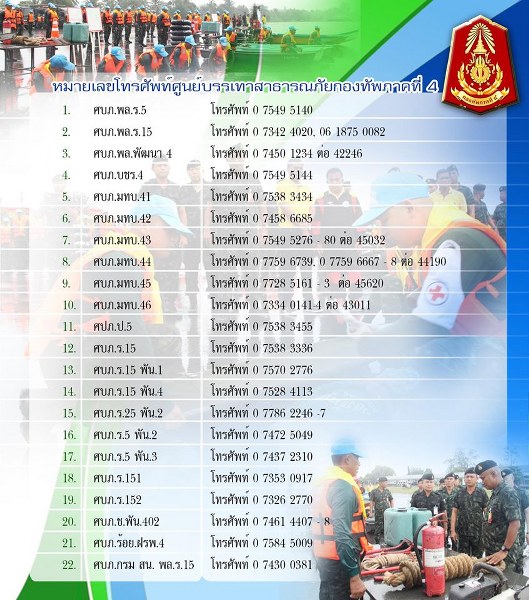มีหมายเลขโทรศัพท์ แจ้งเหตุขอความช่วยเหลือหาแประสบภัย เซฟเก็บไว้ อุ่นใจกว่า เพราะทหารจะเป็นที่พึ่งของประชาชนในทุกโอกาส