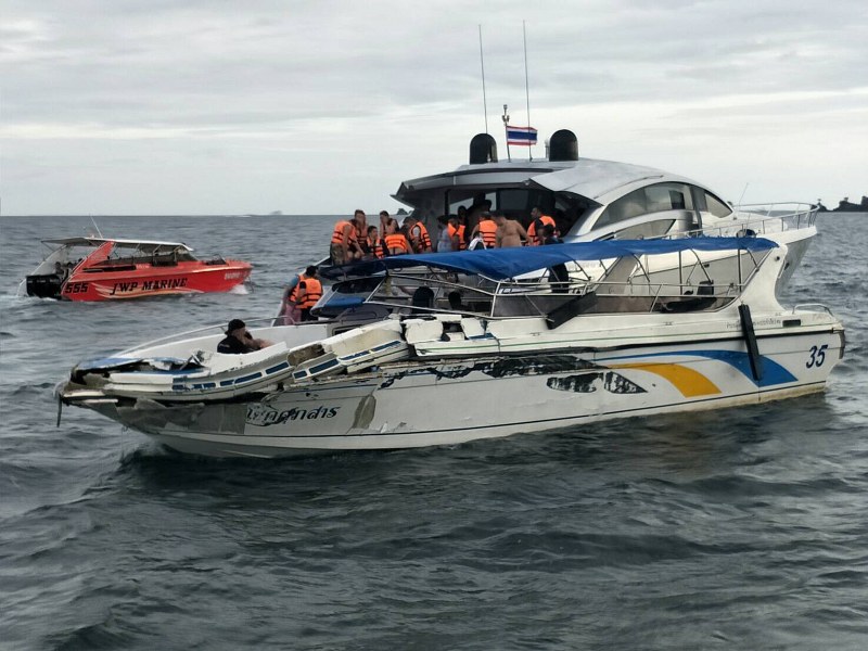 รายงานเบื้องต้น เหตุเรือยอร์ชชนกับเรือเร็วสปีดโบ้ท มีนักท่องเที่ยวได้รับบาดเจ็บ รายละเอียดดังนี้