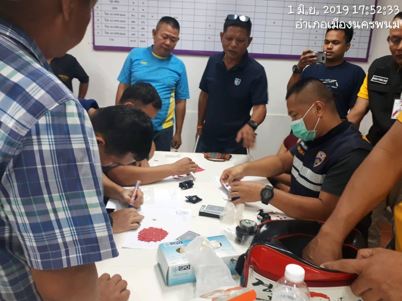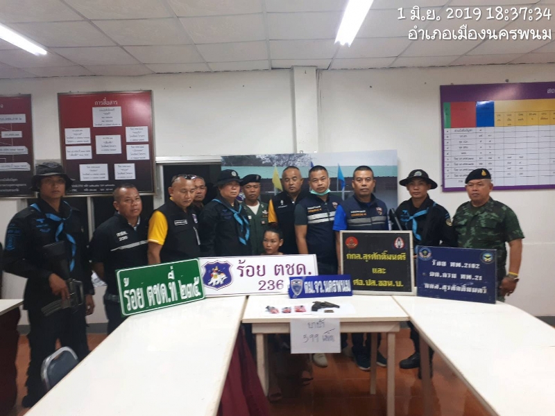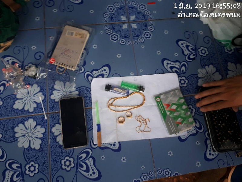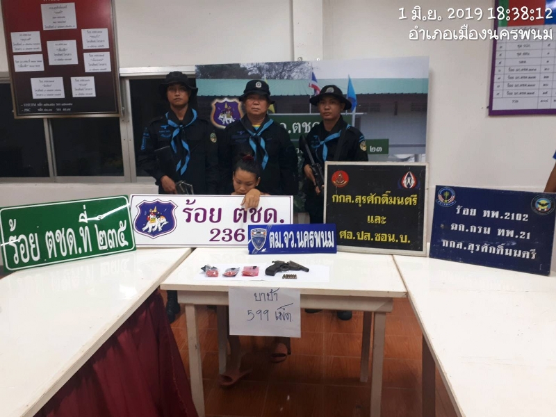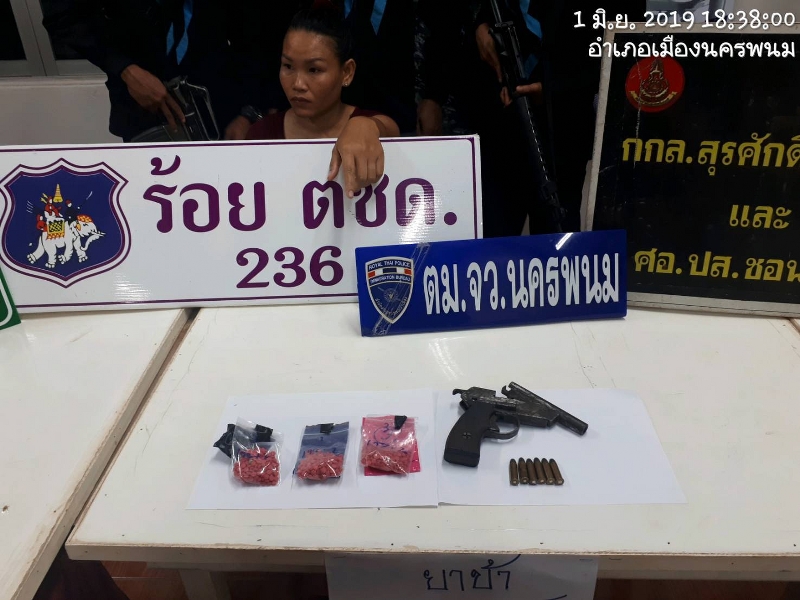 ผลการปฎิบัติ ผู้ต้องหาคือนางสาวสุภาพร จันทร์ภิรม ( โจ้ ) อายุ 35 ปี บ้านเลขที่ 213 ม.7 บ.พรเจริญ ต.วังตามัว อ.เมืองนครพนม จว.นครพนม ของกลาง ยาบ้าจำนวน 599 เม็ด (สีส้ม 593,สีเขียว 6) อาวุธปืนไทยประดิษฐ์ สั้น ( ขนาด .38 ) จำนวน 1 กระบอก กระสุนขนาด .38 จำนวน 6 นัด สร้อยคอทองคำ จำนวน 2 เส้น,แหวนทอง จำนวน 2 วง ( ตรวจยึดตาม พ.ร.บ.มาตรการ ) โทรศัพท์ จำนวน 1 เครื่อง (ตรวจยึดตาม พ.ร.บ.มาตรการ)โดยข้อกล่าวหาว่ามียาเสพติดให้โทษประเภท 1 (ยาบ้า) ไว้ในครอบครอง เพื่อจำหน่าย โดยผิดกฎหมาย และมีอาวุธปืนพร้อมเครื่องกระสุน โดยไม่ได้รับอนุญาต เจ้าหน้าที่จึงผู้ต้องหาพร้อมของกลาง นำส่งพนักงานสอบสวน สภ.เมืองนครพนม ดำเนินคดีตามกฎหมายต่อไป.