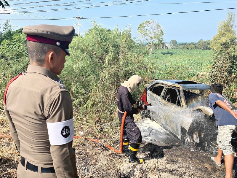 จากการสอบถาม นส. บงกช นวลจันทร์ อายุ 35ปี ผู้เห็นเหตุการณ์เล่าว่า ก่อนเกิดเหตุ ตนเองพบเห็นรถยนต์คันดังกล่าวขับมาตามเส้นทางถนนสุขุมวิท ขาเข้าพัทยา ตามปกติ แต่อยู่ๆรถเกิดเสียหลักหักลงข้างทางจนพุ่งชนกับต้นประดู่ริมข้างทางอย่างแรงจนรถพังเสียหายและได้มีควันโพยพุ่งมาจากตัวรถ ก่อนที่จะมีรถอีกคันที่ขับตามมาจะจอดรถและลงมาช่วยคนขับออกจากตัวรถได้ทันจากนั้นรถก็มีแสงเพลิงลุกไหม้จากห้องเครื่องอย่างรวดเร็ว เบื้องต้น ทางเจ้าหน้าที่ดับเพลิงใช้น้ำและสารเคมีฉีดควบคุมเพลิงไว้ได้ ส่วนผู้บาดเจ็บนั้นอาการปลอดภัย โดยทางเจ้าหน้าที่ตำรวจได้บันทึกภาพที่เกิดเหตุและคำให้การของพยานที่เห็นเหตุการณ์ไว้เป็นหลักฐาน และจะทำการสอบปากคำผู้ขับขี่อย่างละเอียดอีกครั้งภายหลังจากอาการดีขึ้น