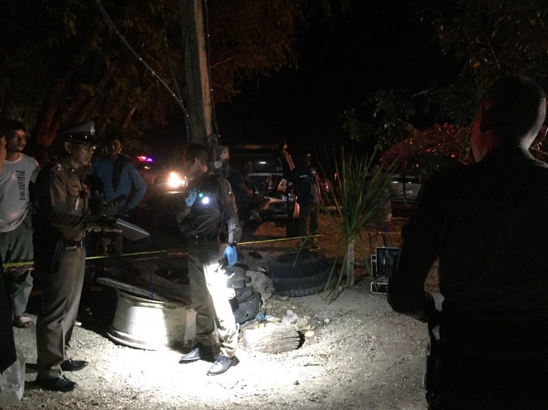ที่เกิดเหตุบนแคร่ไม้พบศพของนายอนุรักษ์ ว่ามา อายุ 34 ปี อยู่บ้านเลขที่ 26/1 ม.2 ต.ซับตะเคียน อ.ชัยบาดาล ลพบุรี นอนหงายเสียชีวิตบนแคร่ไม้ มีบาดแผลที่ศรีษะด้านซ้ายจากกระสุนปืน ทะลุด้านขวา มันสมองกระจายเกลื่อนเลือดไหลนองพื้น ในที่เกิดเหตุพบขวดสุรา อาหาร ถ้วยชามตกแตกกระจัดกระจายเกลื่อน ห่างจุดเกิดเหตุออกไปประมาณ 300 เมตร ริมถนนข้างทาง พบร่างของ นายวัชรพงษ์ เศรษฐพงษ์ อายุ 37 ปี บ้านเลขที่ 140 ม.2 ต.ซับตะเคียน อ.ชัยบาดาล ลพบุรี มีบาดแผลถูกยิงด้วยอาวุธปืนเข้าที่ด้านศรีษะนอนหายใจรวยริน เจ้าหน้าที่ จึงรีบนำตัวส่ง ร.พ.ชัยบาดาล จากการตรวจสอบพื้นที่เกิดเหตุพบรถ จักรยานยนต์ ยี่ห้อฮอนด้า รุ่นเวฟ สีดำ หมายเลขทะเบียน1กด 9163 ลพบุรี ซึ่งเป็นรถของผู้บาดเจ็บล้มคว่ำอยู่ ใกล้กับพบอาวุธปืนพกสั้นขนาด .38 ตกอยู่ 1 กระบอก จึงได้เก็บรวบรวมไว้เป็นหลักฐาน